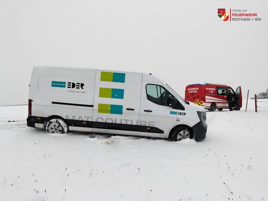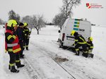 Vor Ort wurde auf der Gemeindestraße zwischen Vornbuch und Mitterbuch ein Kleintransporter vorgefunden, welcher von der schneebedeckten Fahrbahn abgekommen war und sich nicht mehr selbstständig aus dem Schnee befreien konnte.