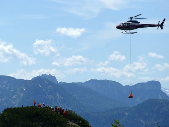 Auch diese Aufgabe wurde erfolgreich bewältigt und es stand eine kontinuierliche Wasserversorgung am Berg zur Verfügung. Dadurch konnten die Löschmaßnahmen intensiviert werden. Am Langwandkogel sicherten Mitglieder der Bergrettung die Löschmannschaften der Feuerwehr, da sich diese in absturzgefährdetem Gelände bewegen mussten. Die Löschwasserversorgung für diesen Bereich erfolgte ausschließlich aus der Luft.