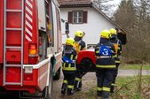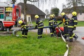 Anschließend ging es mit dem LFA quer durch das Gemeindegebiet. Nacheinander wurde fiktive Brandobjekte angefahren und die Löschgruppe musste dort die befohlenen Maßnahmen umsetzen. Dabei kamen auch verschiedenen Wasserentnahmestellen, vom offenen Teich, über den Löschwasserbehälter bis hin zum Hydranten zur Anwendung. Die immer wieder neuen Bedingungen an den unterschiedlichen Örtlichkeiten förderten die Festigung der Kenntnisse der Teilnehmer.