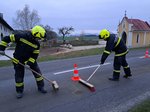Vor Ort wurde ein Traktorgespann vorgefunden, wo es aufgrund eines geplatzten Hydraulikschlauches zu einem Ölaustritt gekommen war, welcher sich auf der L1312 und einer abzweigenden Gemeindestraße auf rund 80m Länge erstreckte. Die Einsatzstelle wurde abgesichert, austretendes Öl aufgefangen bzw. mit Ölbindemittel gebunden und Ölspurtafeln zur Warnung nachfolgender Verkehrsteilnehmer aufgestellt.